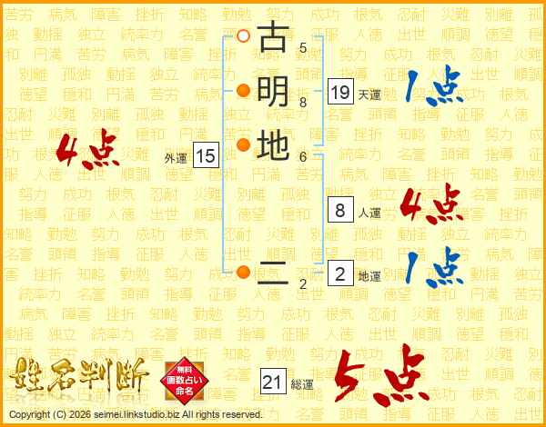 古明地二さんの総運は21画の5点!
