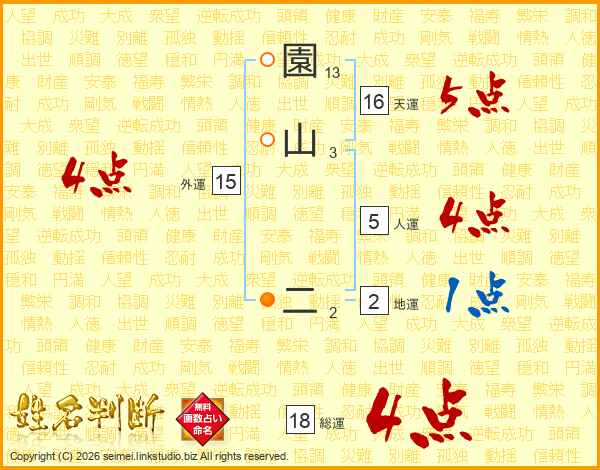 園山二さんの総運は18画の4点!