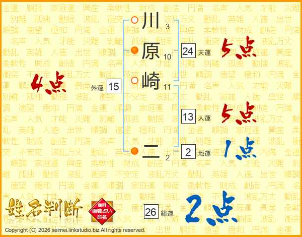 川原崎二さんの総運は26画の2点!