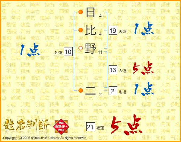 日比野二さんの総運は21画の5点!