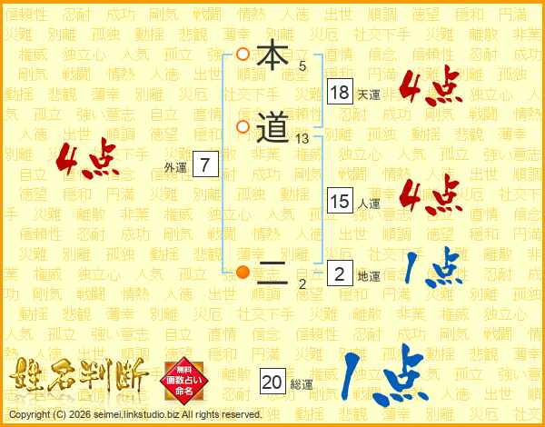 本道二さんの総運は20画の1点!