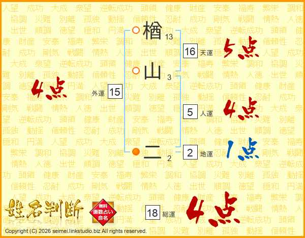 楢山二さんの総運は18画の4点!
