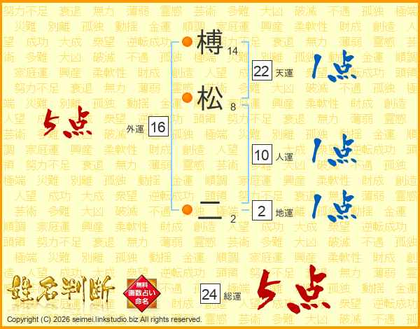 榑松二さんの総運は24画の5点!