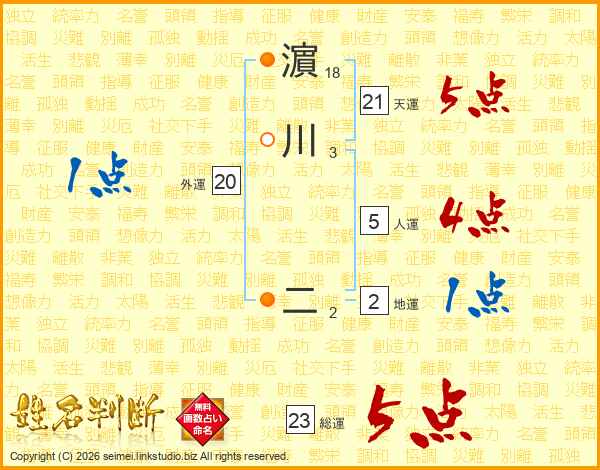 濵川二さんの総運は23画の5点!
