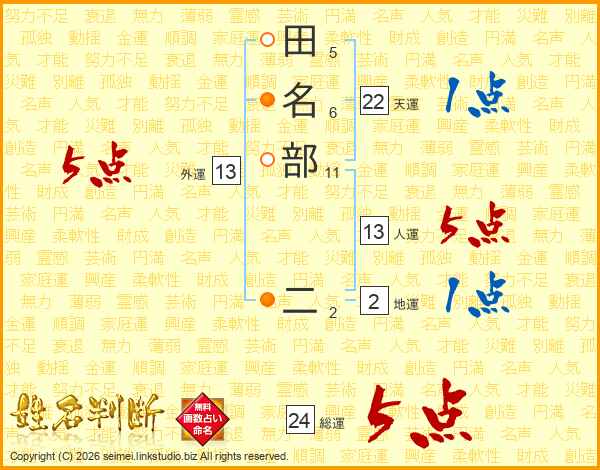 田名部二さんの天運は22画の1点!