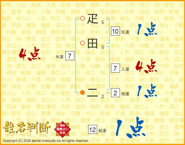 疋田二さんの総運は12画の1点!
