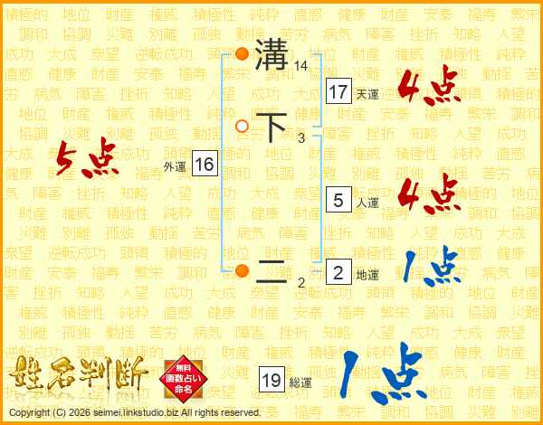 溝下二さんの天運は17画の4点!
