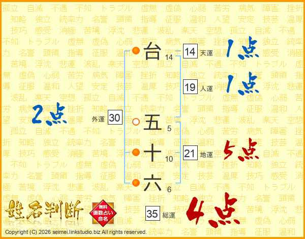 台五十六さんの地運は21画の5点!