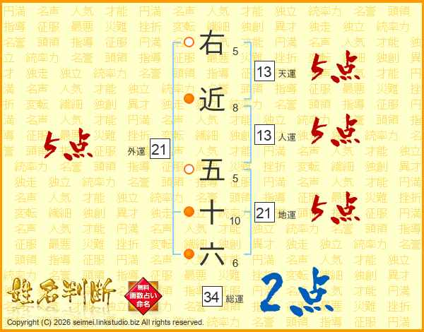 右近五十六さんの外運は21画の5点!