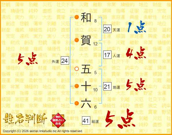 和賀五十六さんの総運は41画の5点!