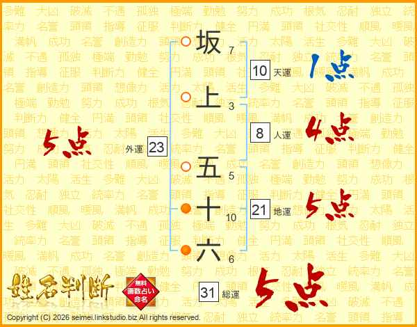 坂(7画)上(3画) 五(5画)十(10画)六(6画)
