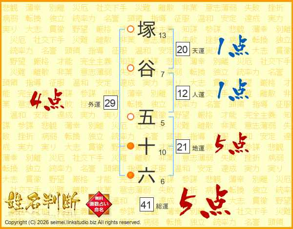 塚谷五十六さんの総運は41画の5点!