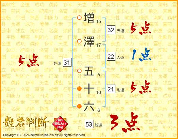 増(15画)澤(17画) 五(5画)十(10画)六(6画)
