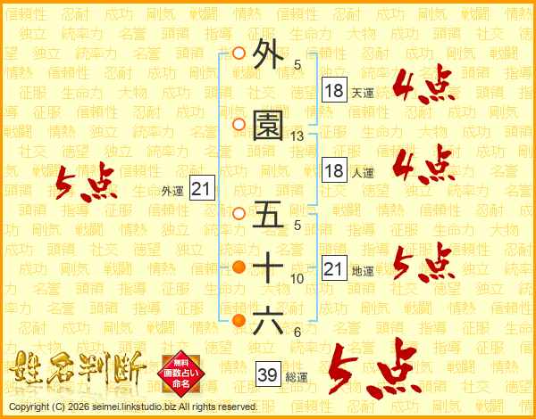 外園五十六さんの総運は39画の5点!