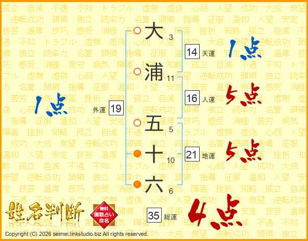 大浦五十六さんの総運は35画の4点!