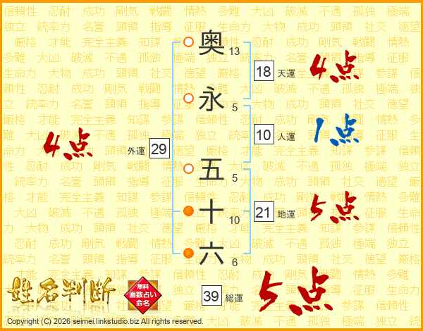 奥永五十六さんの総運は39画の5点!