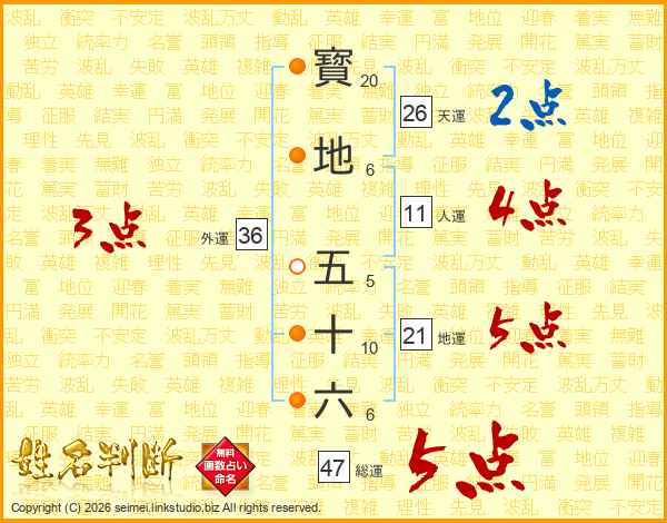 寳地五十六さんの天運は26画の2点!
