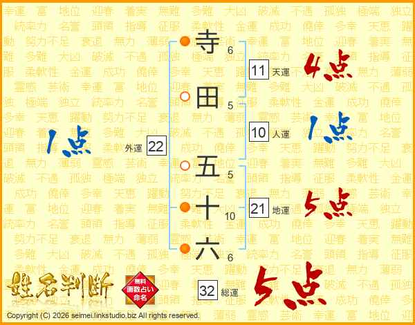 寺田五十六さんの総運は32画の5点!