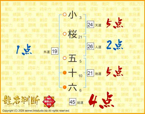 小桜五十六さんの総運は45画の4点!