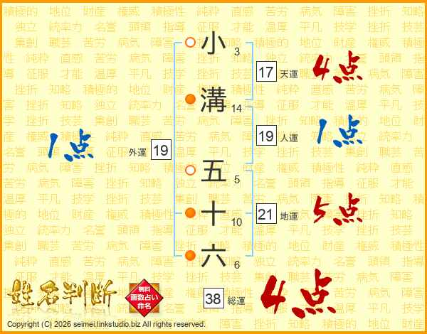 小溝五十六さんの総運は38画の4点!