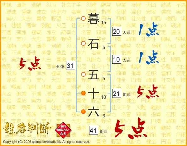 暮(15画)石(5画) 五(5画)十(10画)六(6画)