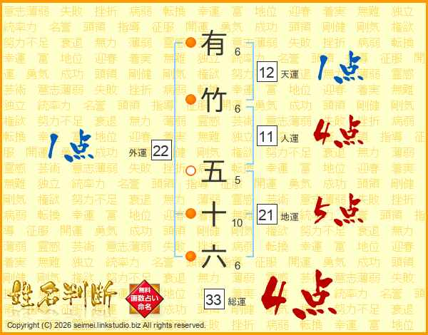 有竹五十六さんの総運は33画の4点!
