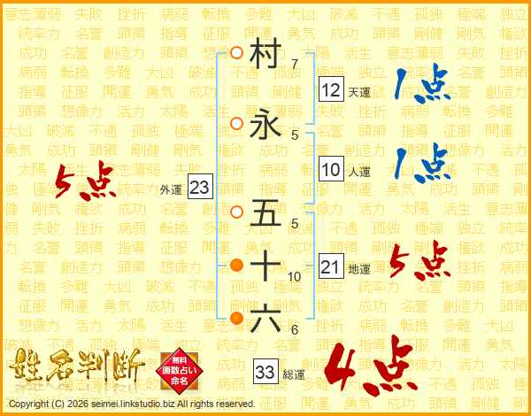 村(7画)永(5画) 五(5画)十(10画)六(6画)