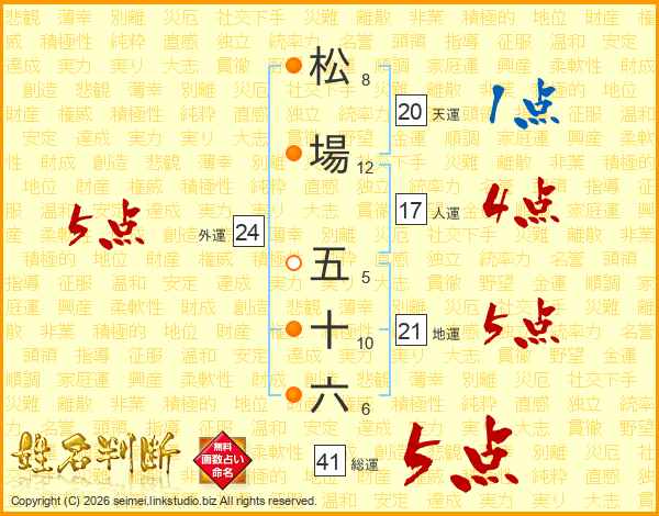 松(8画)場(12画) 五(5画)十(10画)六(6画)