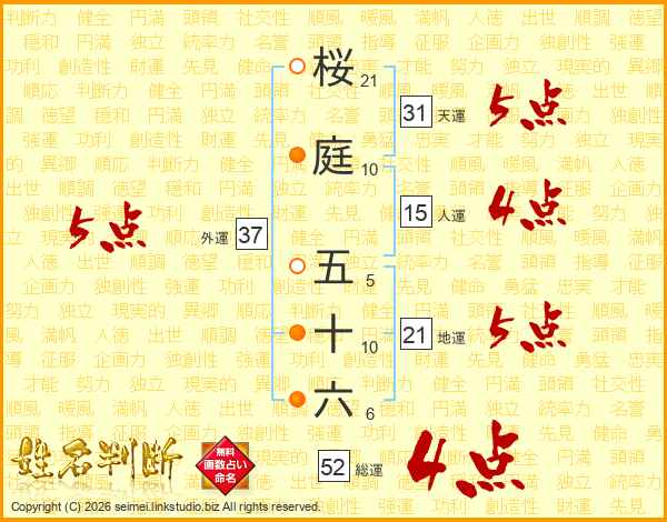 桜(21画)庭(10画) 五(5画)十(10画)六(6画)