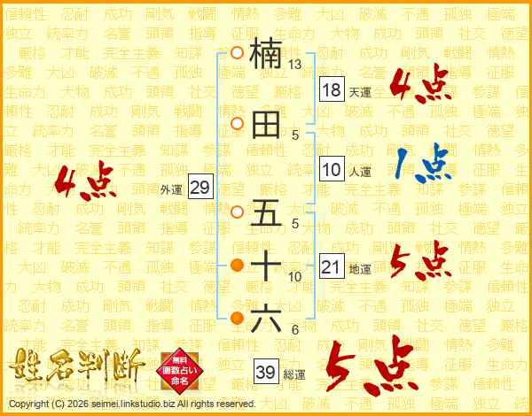 楠田五十六さんの総運は39画の5点!