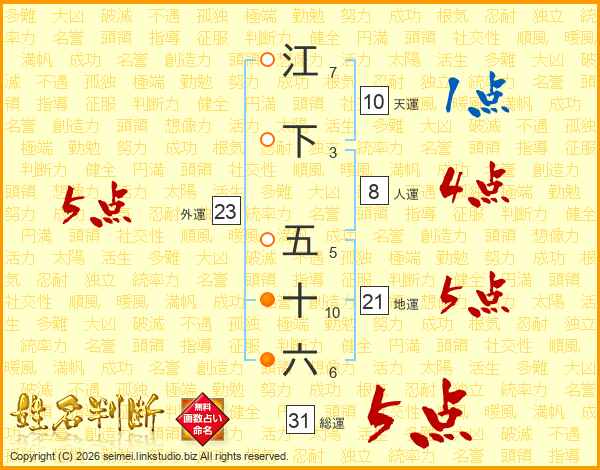 江下五十六さんの総運は31画の5点!