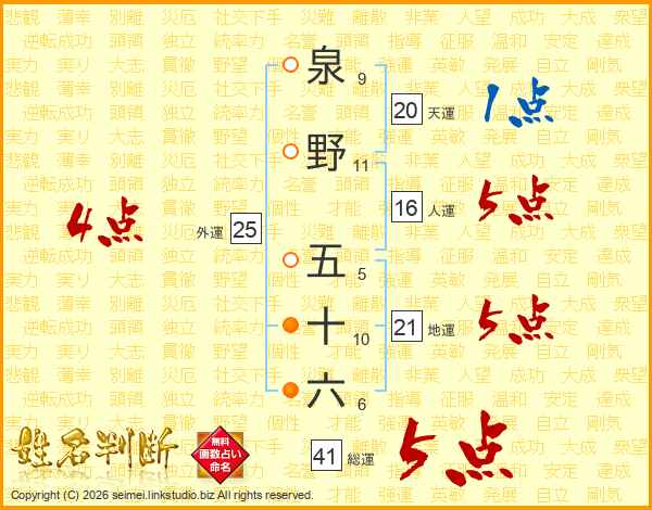泉野五十六さんの地運は21画の5点!
