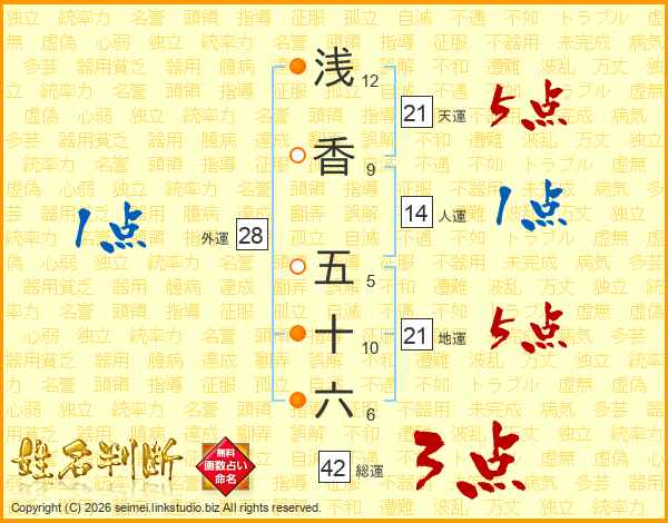浅香五十六さんの天運は21画の5点!