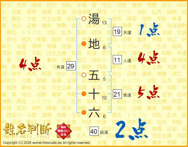 湯地五十六さんの総運は40画の2点!