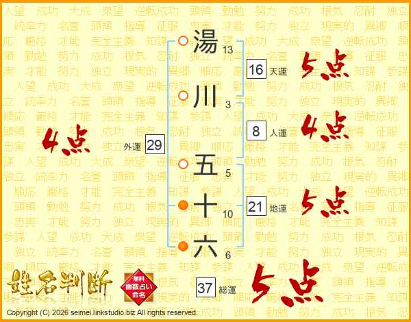 湯川五十六さんの総運は37画の5点!