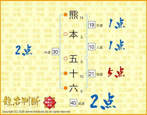 熊本五十六さんの地運は21画の5点!