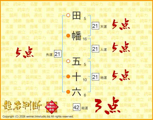 田(5画)幡(16画) 五(5画)十(10画)六(6画)
