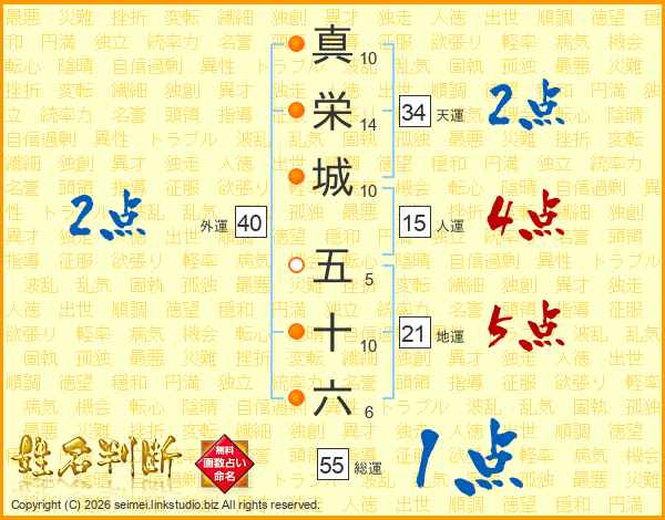 真(10画)栄(14画)城(10画) 五(5画)十(10画)六(6画)
