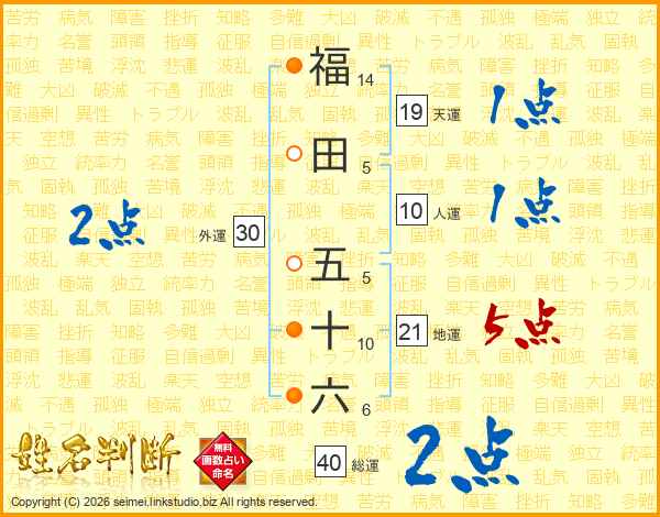 福田五十六さんの地運は21画の5点!