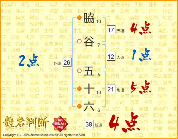 脇(10画)谷(7画) 五(5画)十(10画)六(6画)