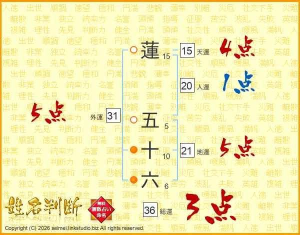 蓮五十六さんの外運は31画の5点!
