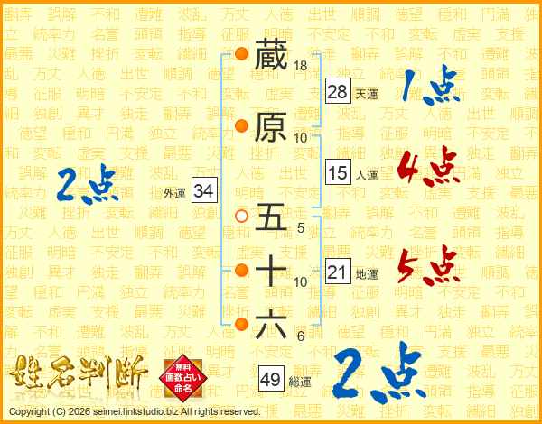 蔵原五十六さんの人運は15画の4点!