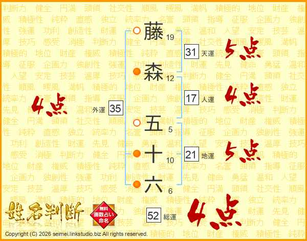 藤森五十六さんの総運は52画の4点!