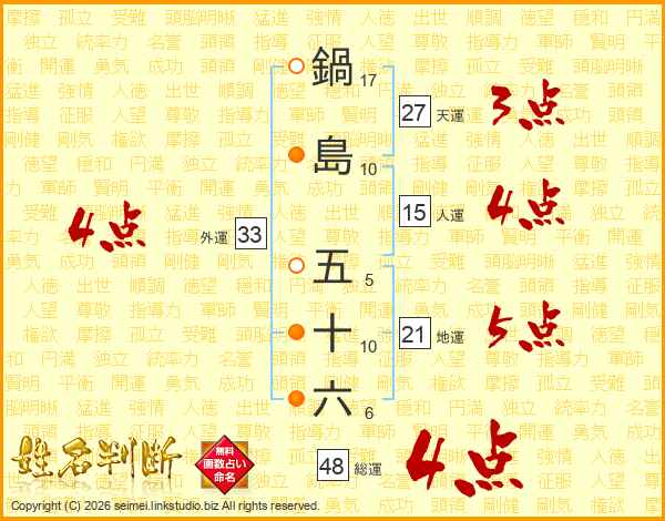 鍋島五十六さんの外運は33画の4点!