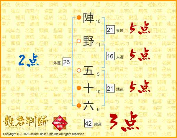 陣野五十六さんの天運は21画の5点!