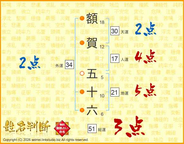 額賀五十六さんの総運は51画の3点!