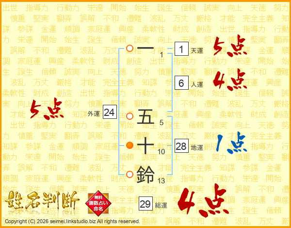 一五十鈴さんの総運は29画の4点!