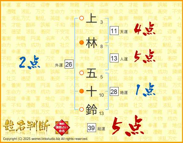 上林五十鈴さんの総運は39画の5点!