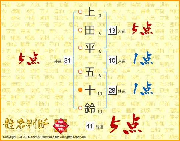 上田平五十鈴さんの総運は41画の5点!