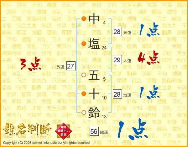 中塩五十鈴さんの総運は56画の1点!